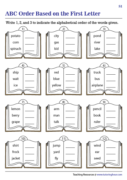 One common type of ABC order worksheet involves arranging a list of words in alphabetical order. Children are required to write the words in the correct sequence, starting from A to Z. Another variation includes arranging a series of words or phrases in alphabetical order based on the first letter of each word.