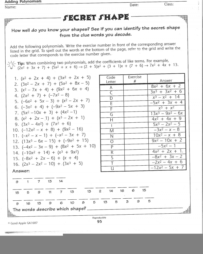 Adding polynomials worksheets can be a valuable tool for teachers to assess students’ understanding of the topic. By completing these worksheets, students can demonstrate their ability to add polynomials accurately and efficiently. Teachers can use the results to identify areas where students may need additional support or instruction.