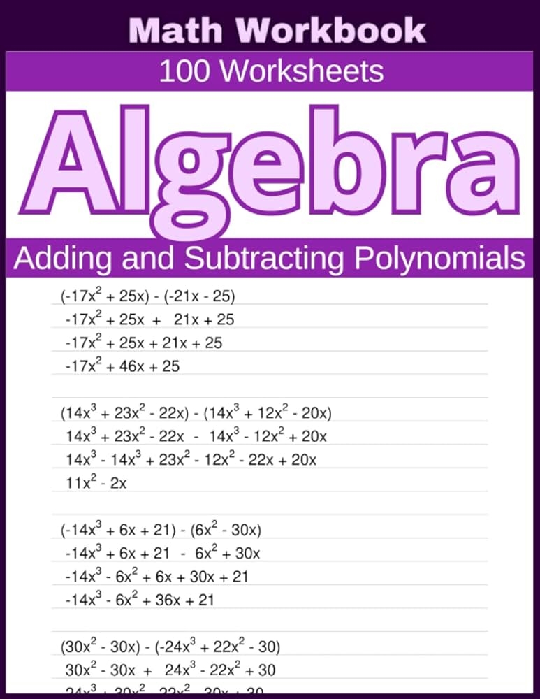 These worksheets typically include a variety of polynomials with different degrees and numbers of terms. Students are required to add the polynomials together by combining like terms and simplifying the expression. This practice helps reinforce the rules of polynomial addition and allows students to develop their problem-solving skills.