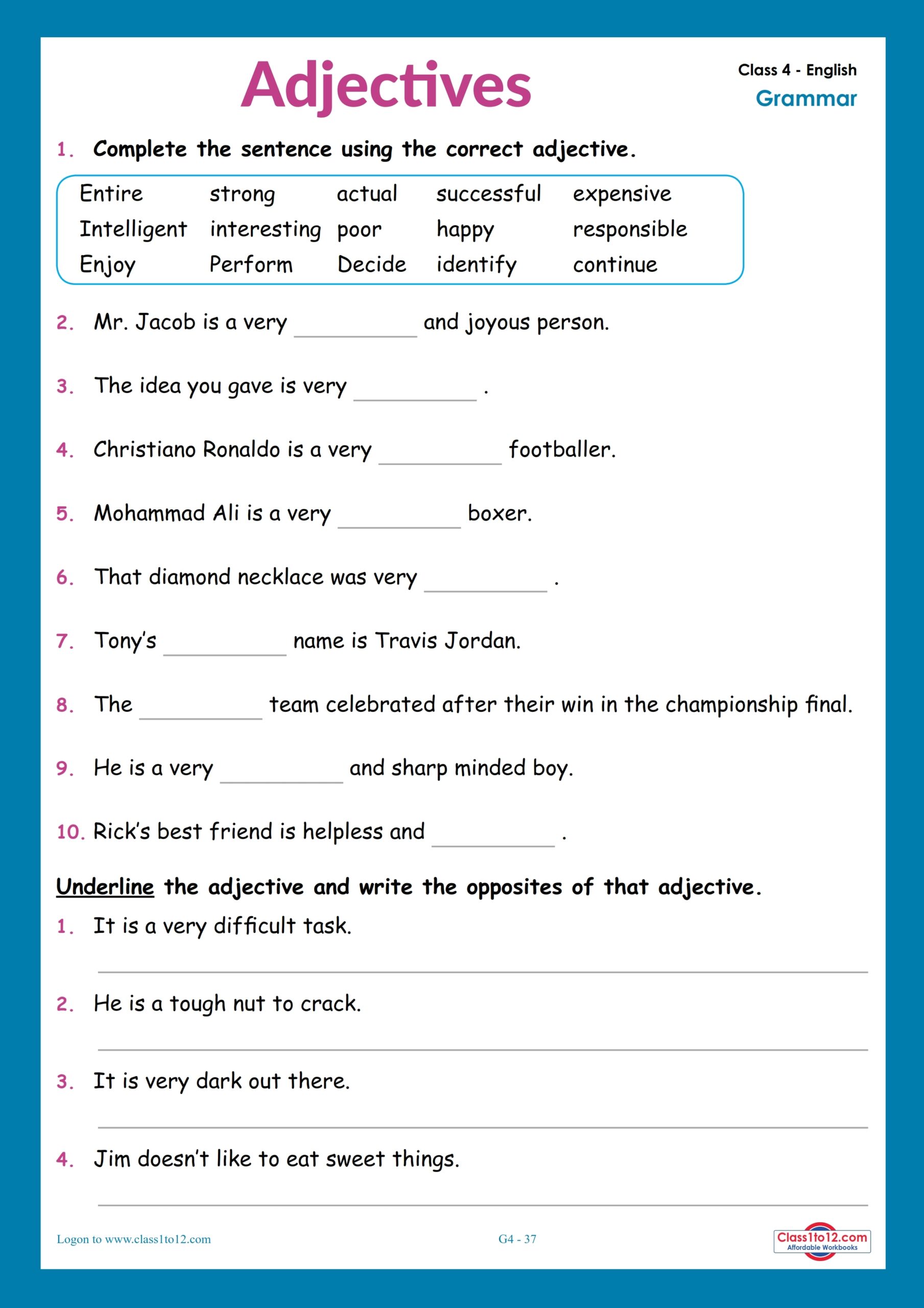 Another benefit of using adjectives worksheets is that they can be tailored to suit students’ individual needs. Teachers can create worksheets that are appropriate for different skill levels, allowing students to work at their own pace and gradually build their understanding of adjectives. This personalized approach can help to ensure that students are challenged and engaged in their learning.