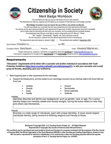 By completing this merit badge worksheet, scouts will learn valuable skills and gain a deeper understanding of what it means to be a good citizen in their community. They will have the opportunity to engage with local organizations, participate in service projects, and develop a sense of civic responsibility that will stay with them for life.