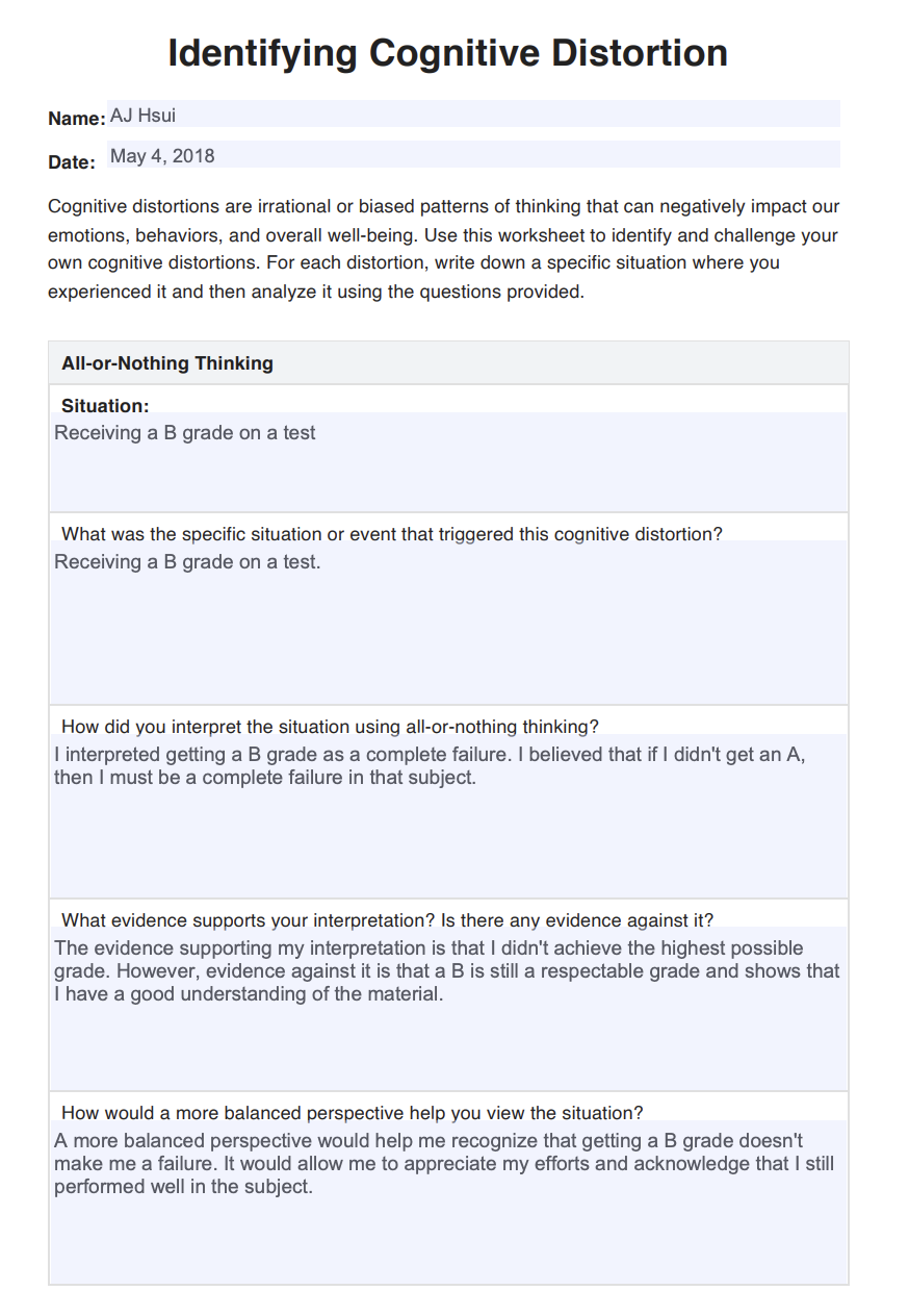 One popular resource for working on cognitive distortions is the Cognitive Distortions Worksheet PDF. This worksheet typically includes a list of common cognitive distortions, such as black-and-white thinking, overgeneralization, and personalization. It provides space for individuals to identify instances of these distortions in their own thinking and to challenge them with more balanced perspectives.
