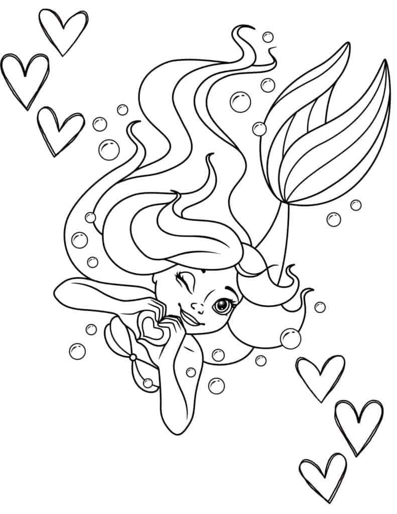 Coloring pages of mermaids come in a variety of designs and styles, from simple outlines to intricate patterns. These pages often depict mermaids in different poses and settings, such as swimming in the ocean, sitting on rocks, or interacting with other sea creatures. Some coloring pages also feature underwater landscapes with coral reefs, seashells, and colorful fish, adding to the enchanting atmosphere of the mermaid theme.