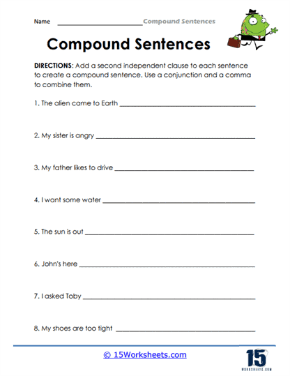 Practicing with this worksheet will help you become more comfortable with creating compound sentences and using them effectively in your writing.