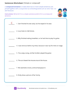 Compound Sentences Worksheet