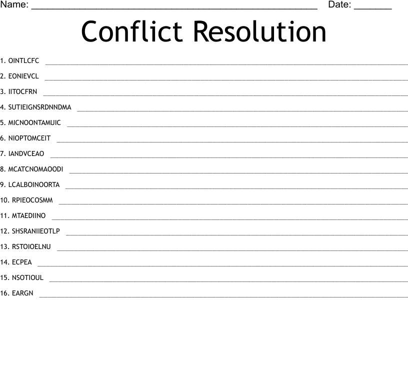 Conflict is a natural part of human interaction, but it can be challenging to navigate. Conflict resolution worksheets are a helpful tool in guiding individuals through the process of resolving conflicts in a healthy and constructive manner. These worksheets provide a framework for identifying the root causes of conflicts, exploring different perspectives, and finding mutually agreeable solutions.