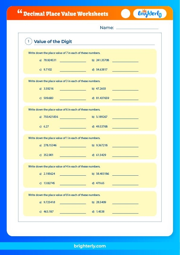 Furthermore, decimal place value worksheets are a valuable resource for teachers to assess students’ understanding of decimal place value concepts and track their progress over time. These worksheets can be used as homework assignments, classwork activities, or as part of a standardized test preparation program to help students excel in math.