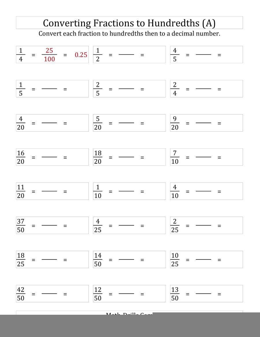 Fraction to decimal worksheets, on the other hand, focus on converting fractions into decimal numbers. Students are given fractions in numerator and denominator form and are asked to convert them into decimal form. These worksheets help students practice converting fractions to decimals using different strategies, such as long division or mental math, depending on the complexity of the fraction.