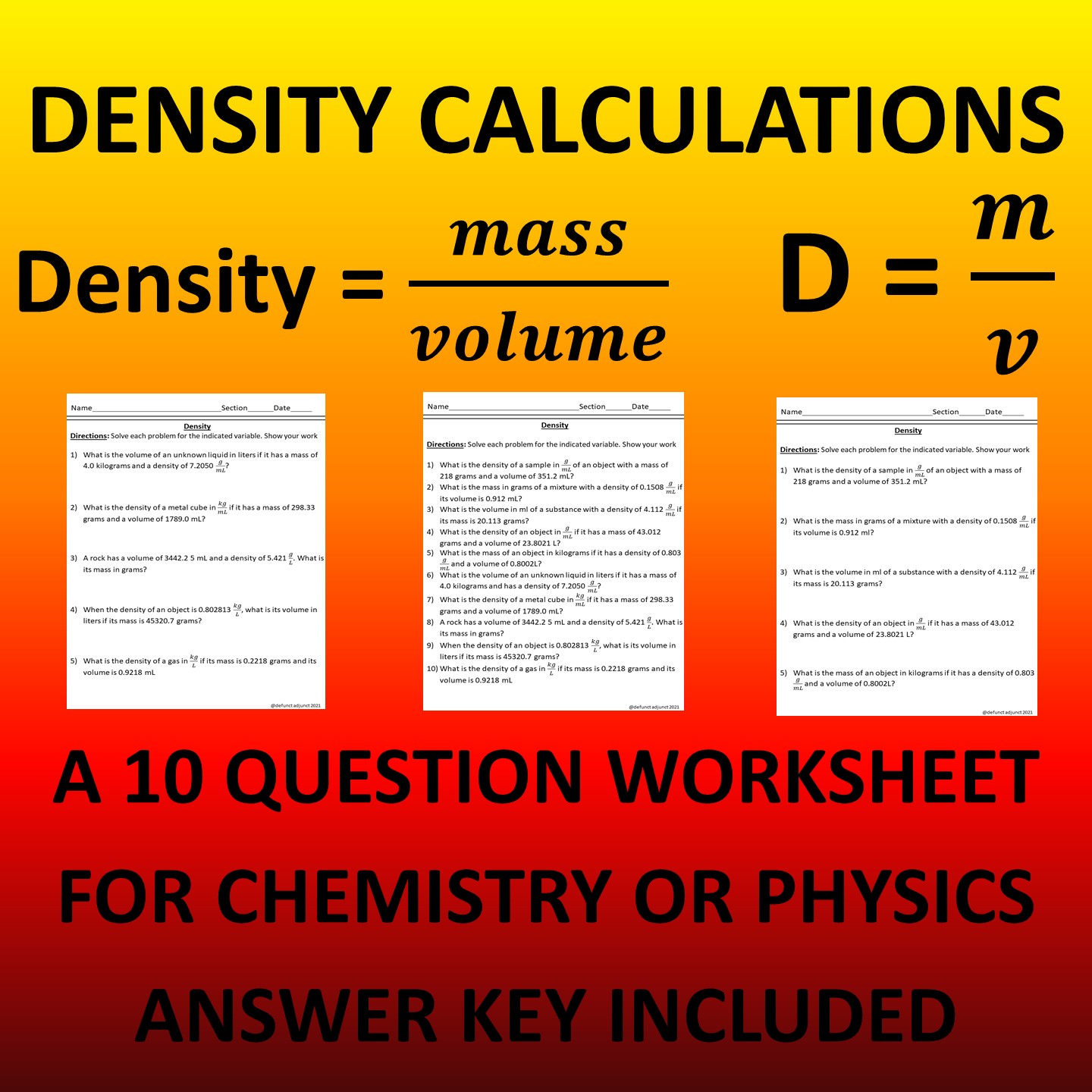A density worksheet typically consists of a series of problems or questions that require students to calculate the density of various substances or objects. These problems often involve determining the mass and volume of a given sample and then using the formula for density (density = mass/volume) to find the answer. By practicing these calculations on a worksheet, students can develop their ability to apply the concept of density in real-world scenarios and improve their problem-solving skills.