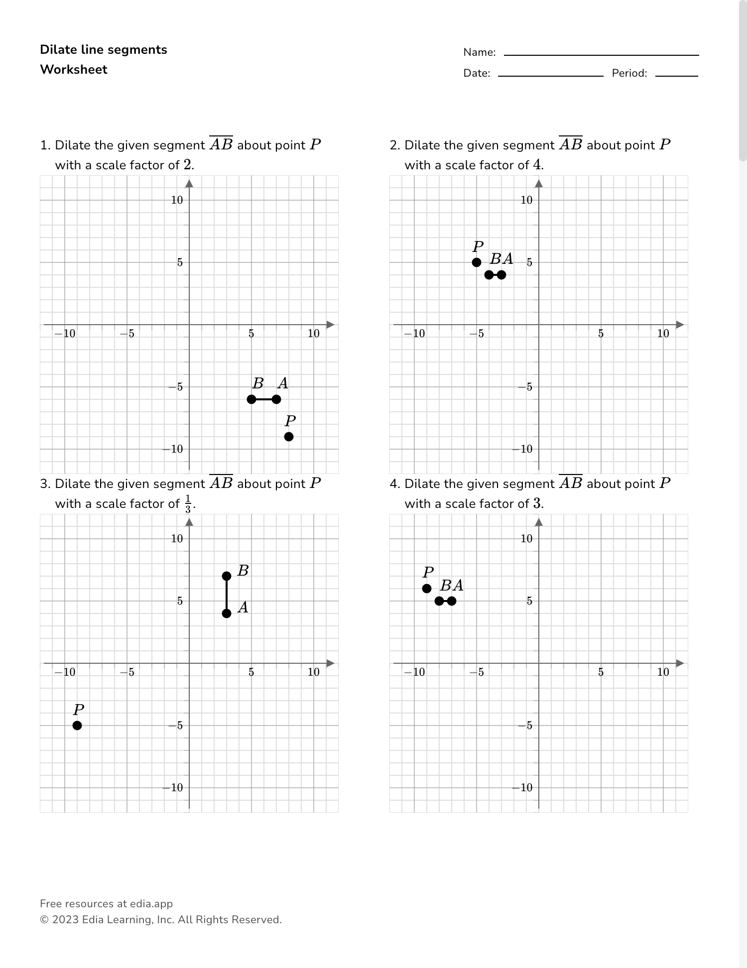 Dilations Worksheet