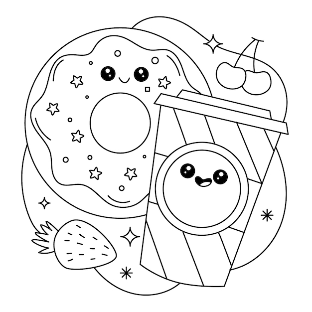 Donut kawaii food coloring pages are a delightful way to indulge in your love for these delectable treats while expressing your artistic side. So grab your markers, crayons, or colored pencils, and get ready to create some sugary-sweet masterpieces that are sure to make everyone smile.
