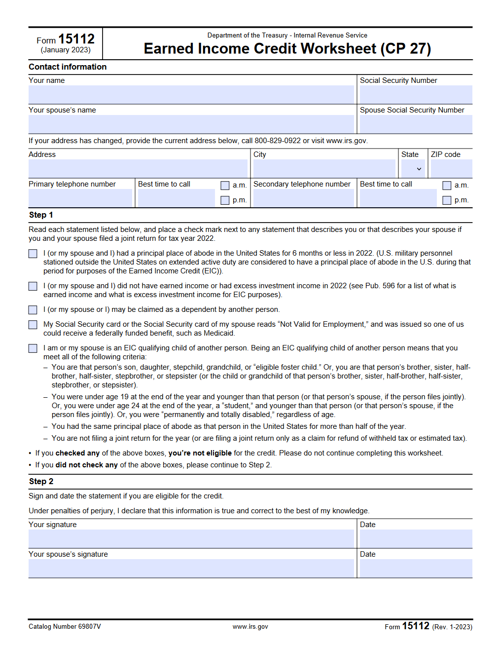 Many taxpayers are eligible for the Earned Income Credit (EIC), a tax benefit for low to moderate-income individuals and families. In order to determine if you qualify for this credit, you will need to fill out the Earned Income Credit Worksheet provided by the Internal Revenue Service (IRS).
