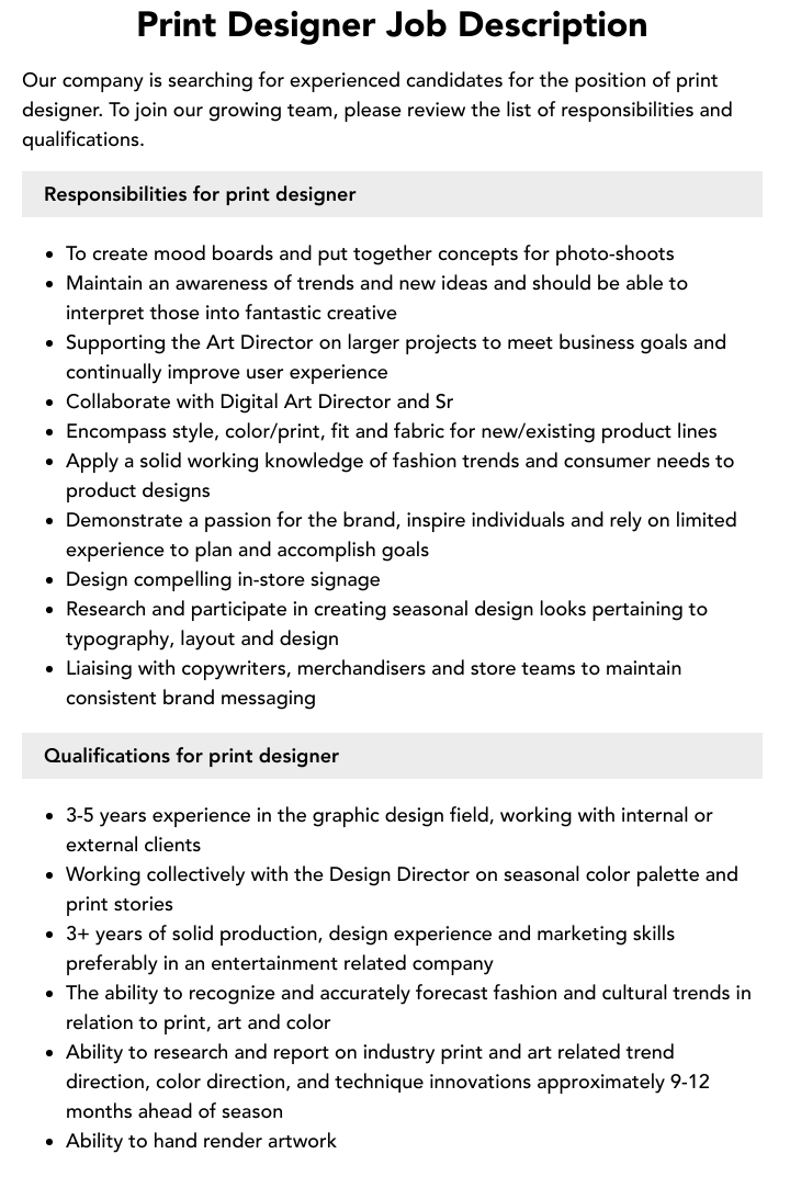 In addition to creating prints, you may also be responsible for selecting colors, textures, and materials that will enhance your designs. You will need to have a strong understanding of the production process and be able to communicate your ideas effectively to manufacturers. Attention to detail and the ability to work under pressure are essential skills for this role, as you will often be required to meet tight deadlines and work on multiple projects simultaneously.