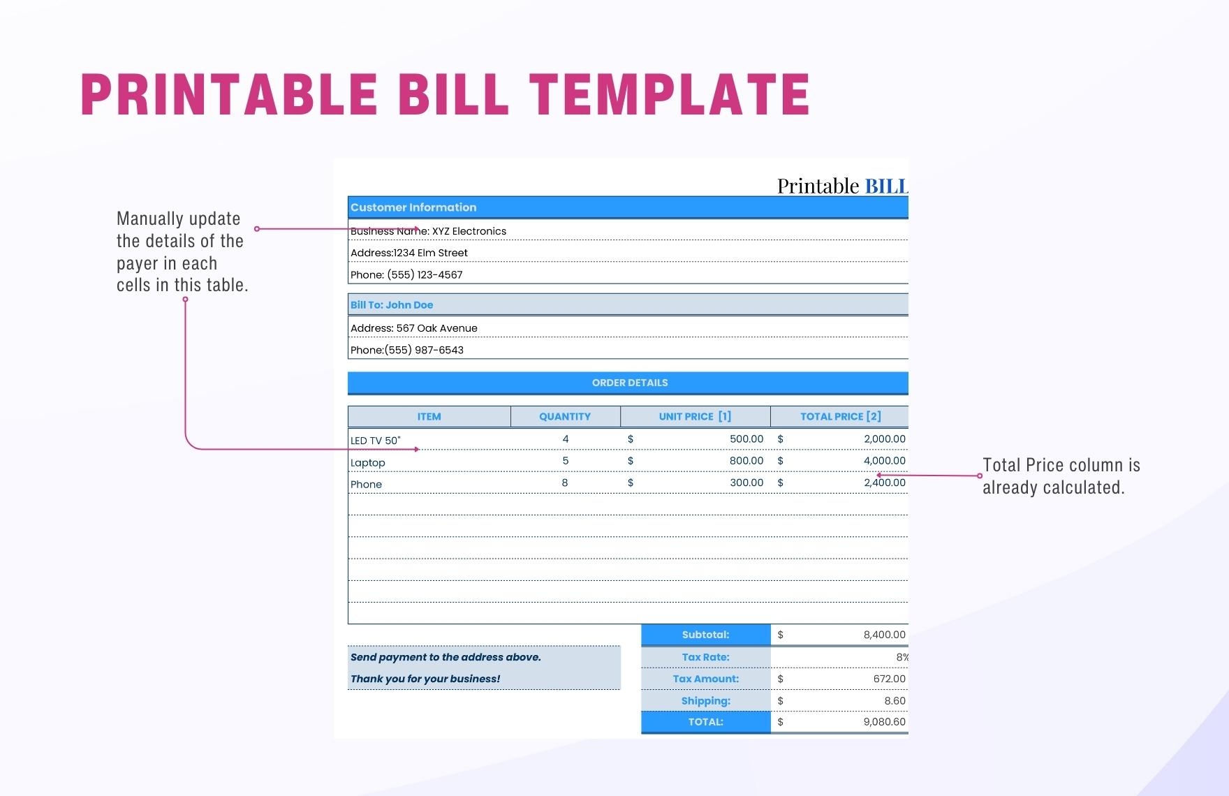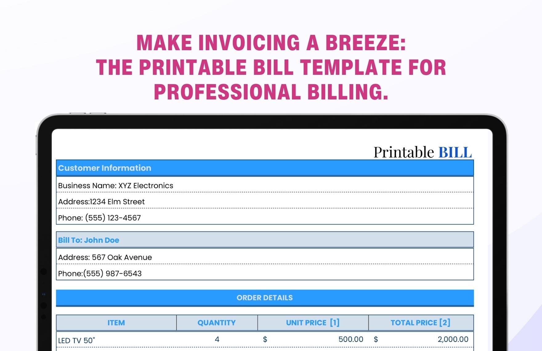 Free Printable Bill Template