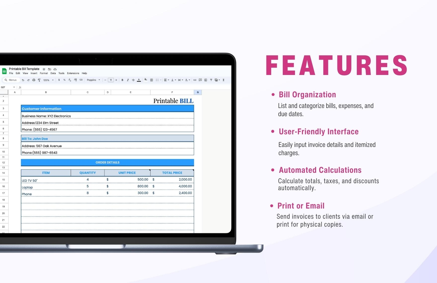 Furthermore, these templates often come with pre-formatted fields for essential information such as the bill date, due date, description of services, and total amount due. This can help you avoid errors and ensure that all necessary details are included in your bills.