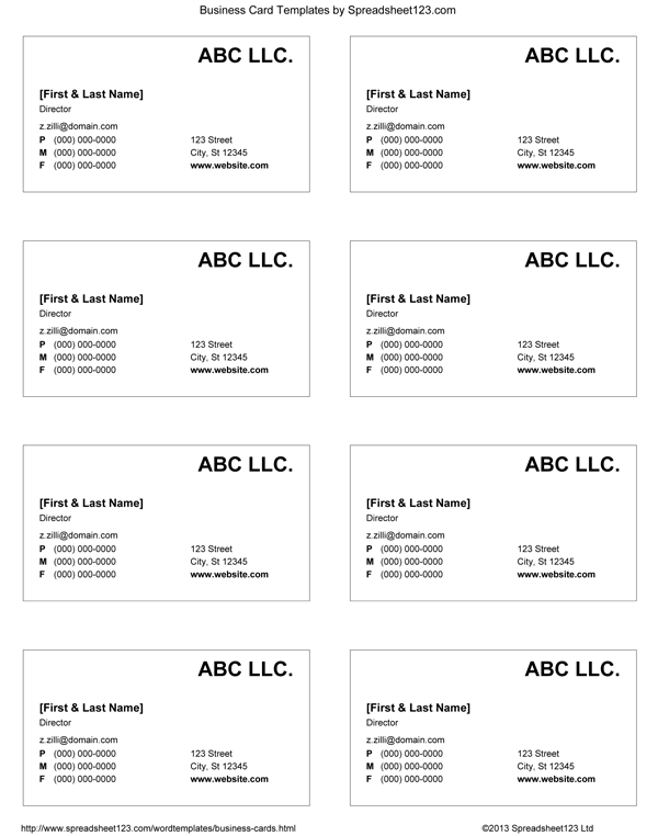Free Printable Business Card Templates Microsoft Word