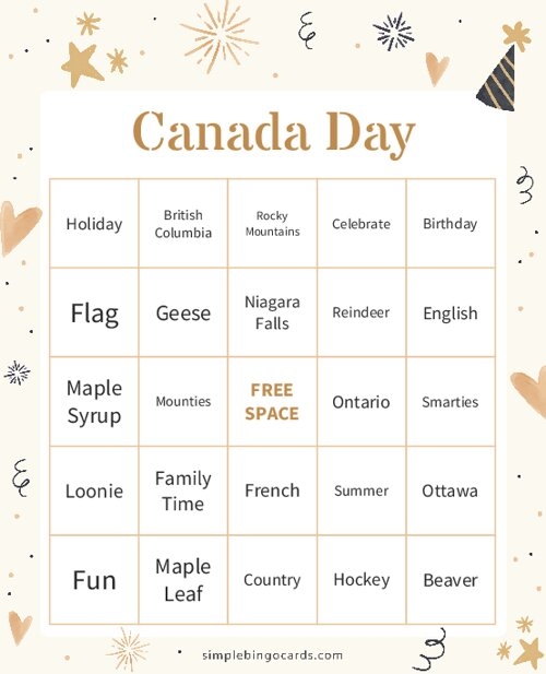In conclusion, free printable Canada Day bingo cards are a fantastic way to add some excitement to your holiday celebrations. Whether you’re playing with family, friends, or strangers, these themed cards are sure to bring everyone together for a fun and memorable game. So, don’t wait any longer – download your free Canada Day bingo cards and start playing today!