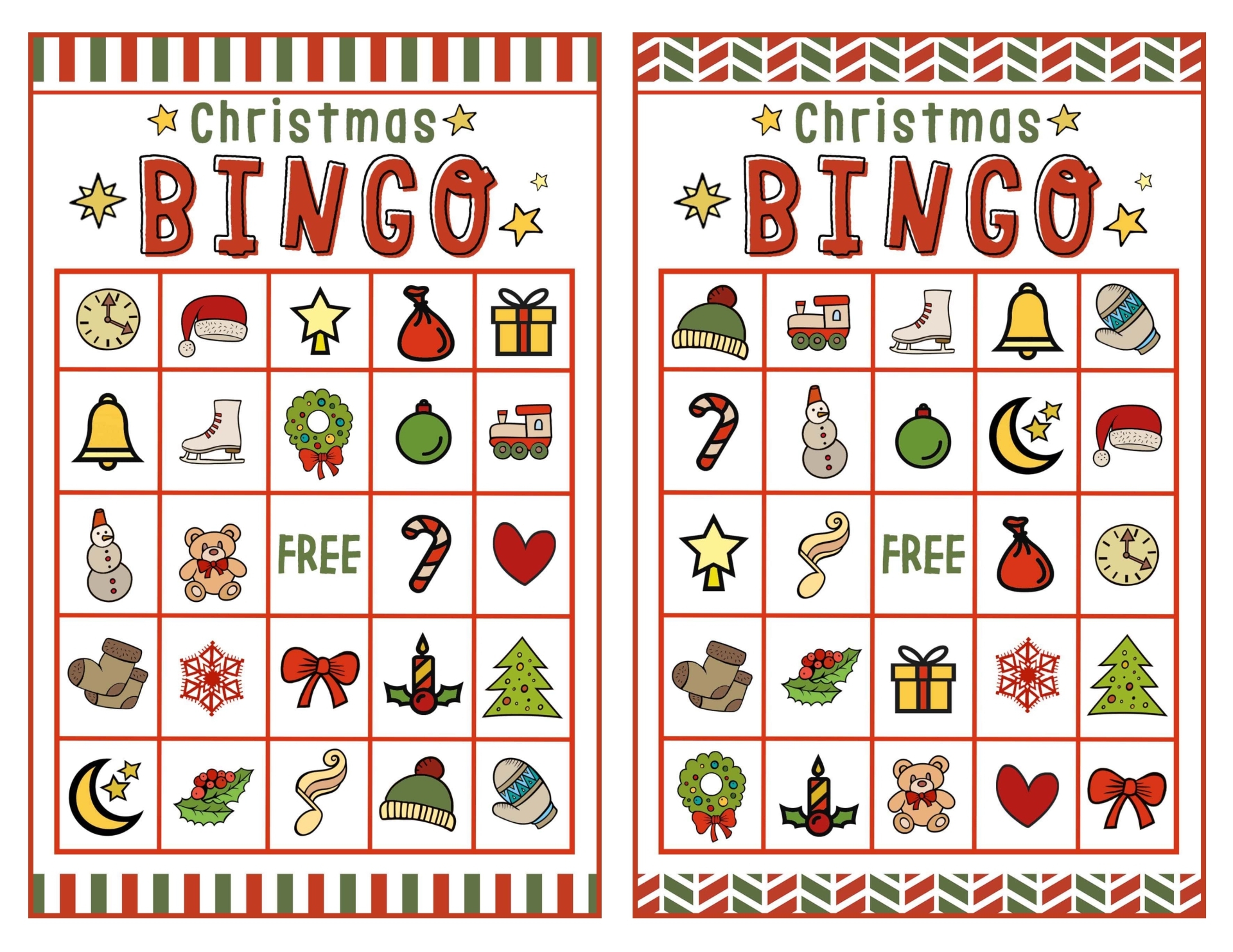 These free printable Christmas Bingo cards for 25 come in a variety of designs, from traditional red and green colors to whimsical Santa Claus and reindeer illustrations. You can choose the Bingo cards that best suit your party’s theme and style, making the game even more enjoyable for your guests.