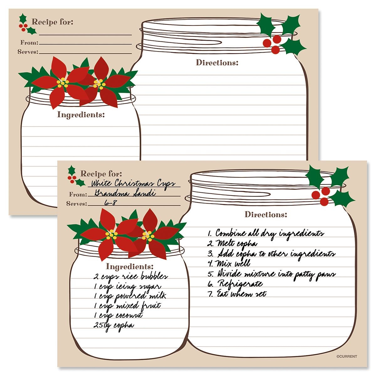 Our collection of Christmas recipe card templates features festive designs and customizable layouts to suit any culinary creation. From classic cookies and cakes to savory mains and sides, these cards are perfect for jotting down ingredients, instructions, and personal notes.