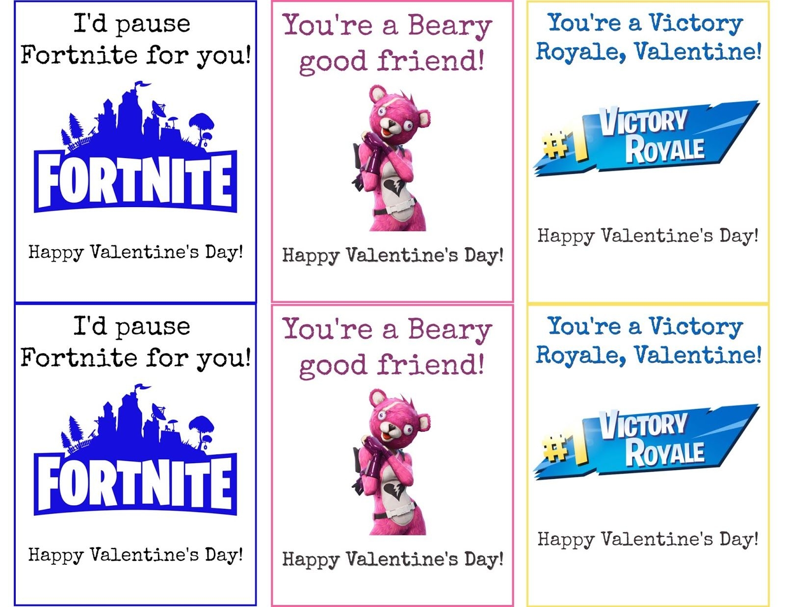 Download and Print free printable fortnite valentine cards Listed below