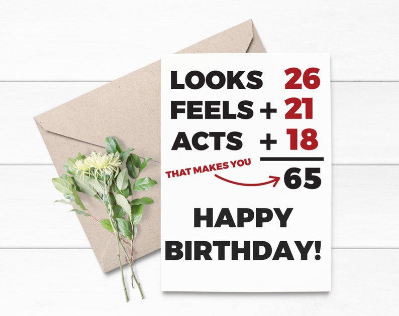 1. “You’re not 65, you’re 18 with 47 years of experience!” This card is perfect for the young-at-heart who refuse to let age define them. It’s a humorous reminder that age is just a number, and it’s never too late to embrace your inner youth.