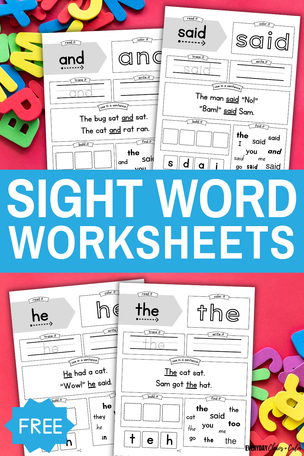 Free Sight Word Worksheets