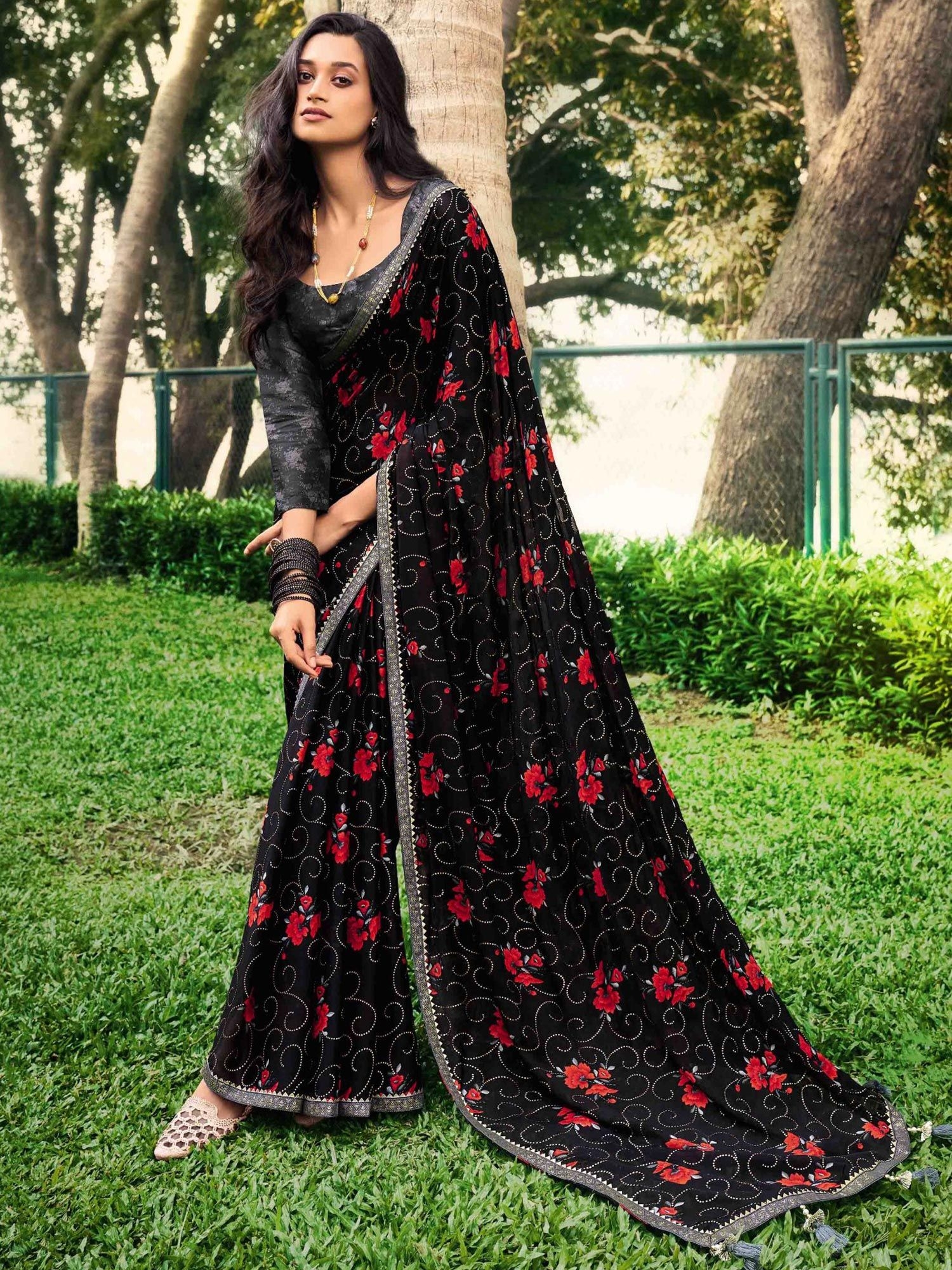 In conclusion, garden floral print sarees are a timeless and elegant choice for any occasion. Their delicate floral patterns and soft colors make them a versatile and stylish addition to any wardrobe. Whether you’re attending a wedding, a party, or a casual gathering, these sarees are sure to make you look and feel beautiful.