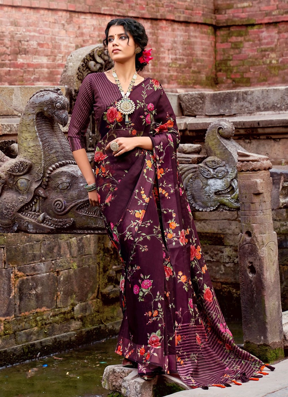 One of the key features of garden floral print sarees is their versatility. You can pair them with a variety of blouses and accessories to create different looks. Whether you prefer a traditional, classic style or a more modern, contemporary look, these sarees can be styled to suit your taste.