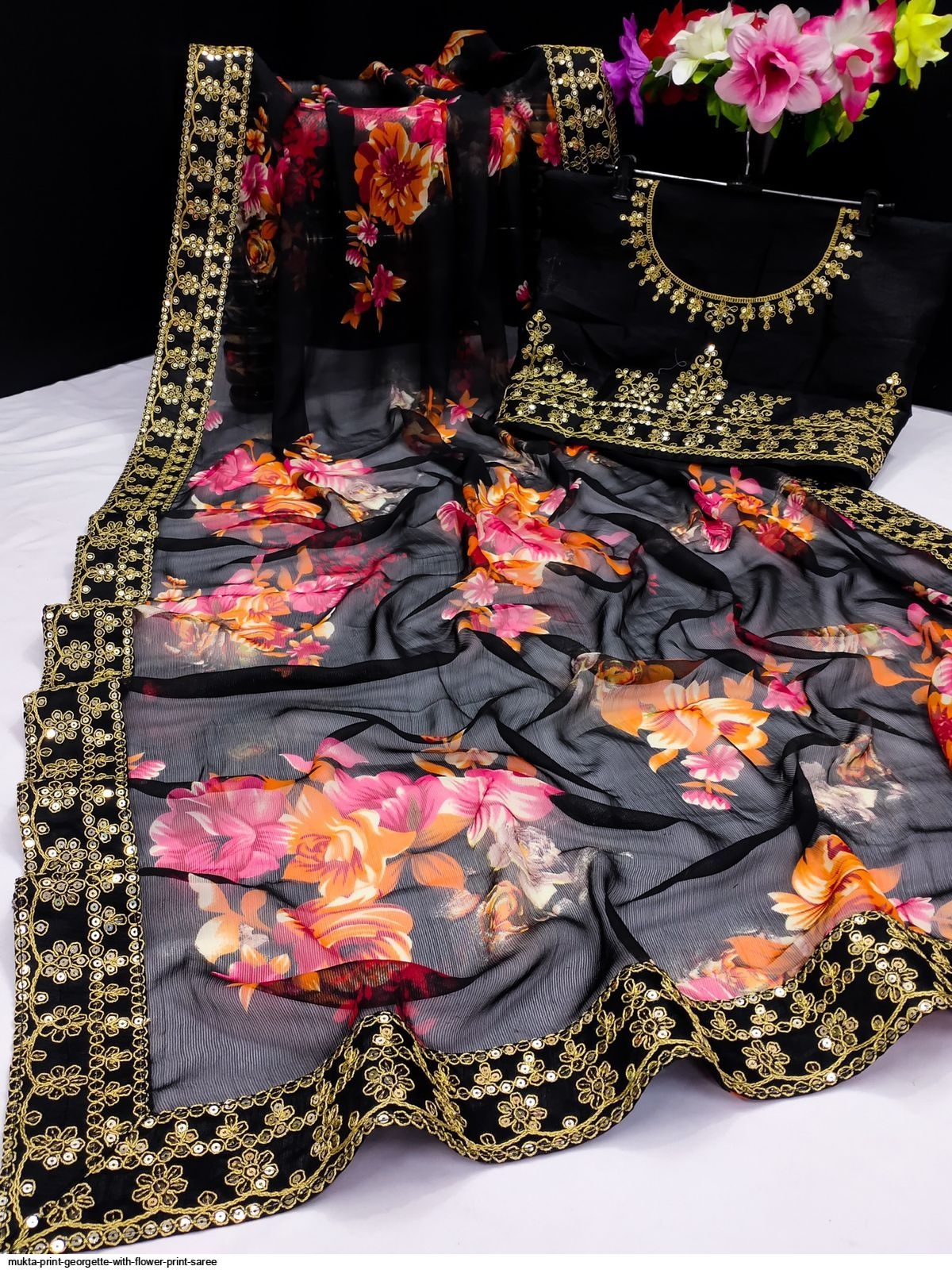 Whether you prefer a subtle and delicate floral print or a bold and vibrant design, there is a garden print saree for every taste and preference. Pair it with statement jewelry and a contrasting blouse to elevate your look and make a style statement wherever you go.