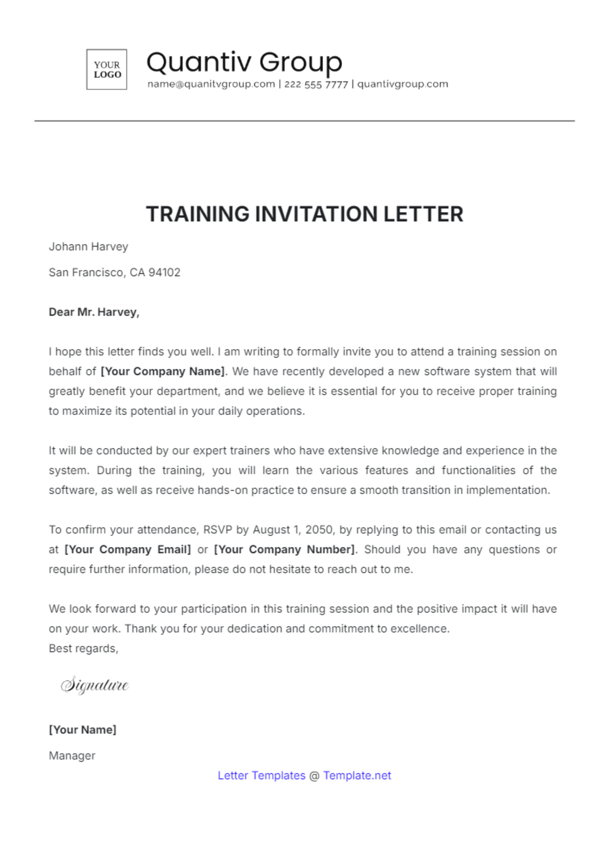 Invitation Email Template for Training