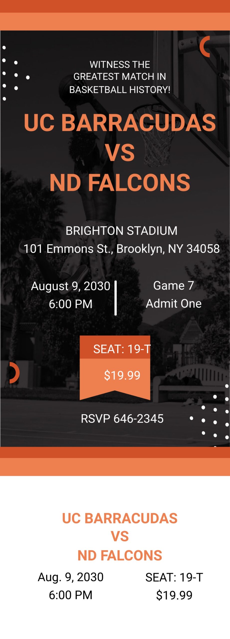 Our basketball invitation templates feature eye-catching designs such as basketballs, jerseys, hoops, and more, to instantly convey the theme of your event. You can easily add your event details, date, time, location, and any other information you want to include to make the invitation personalized and informative. With just a few clicks, you can have a professional-looking invitation that will impress your guests and set the tone for a memorable event.