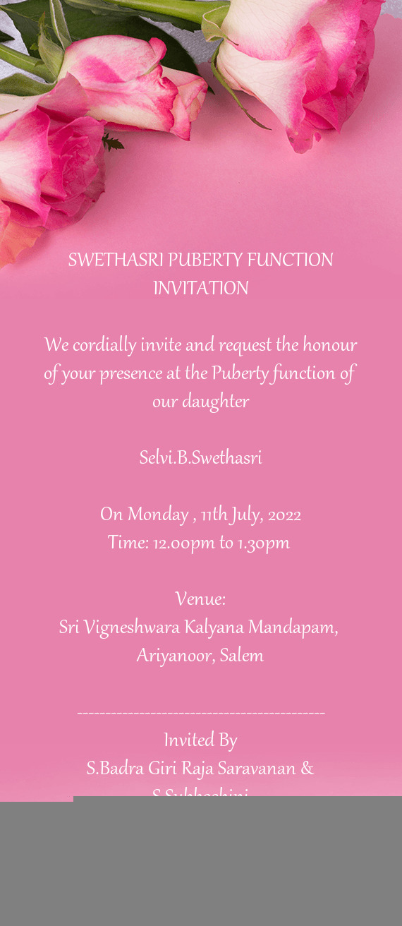 Invitation Template for Puberty Function