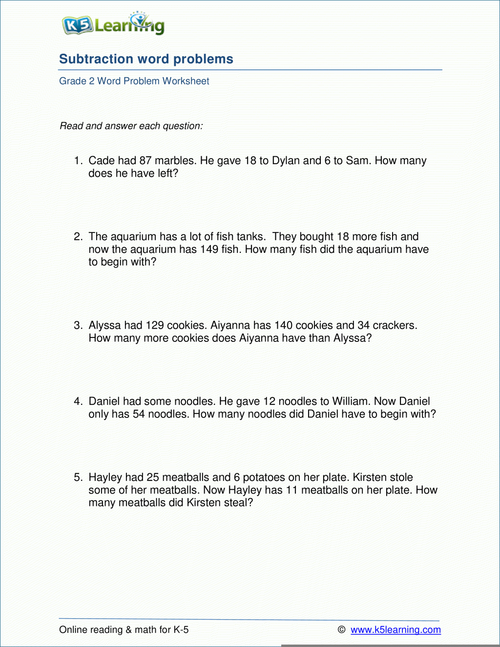 K12 Learning Worksheets