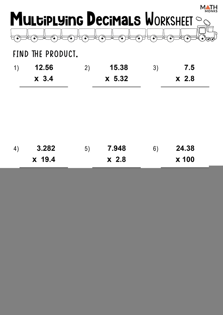 A multiplying decimals worksheet typically consists of a series of problems that require you to multiply decimal numbers. These worksheets may include various types of decimal multiplication problems, such as multiplying a decimal by a whole number, multiplying two decimal numbers, or multiplying multiple decimal numbers in a single problem. The purpose of these worksheets is to help you practice and master the process of multiplying decimals efficiently.