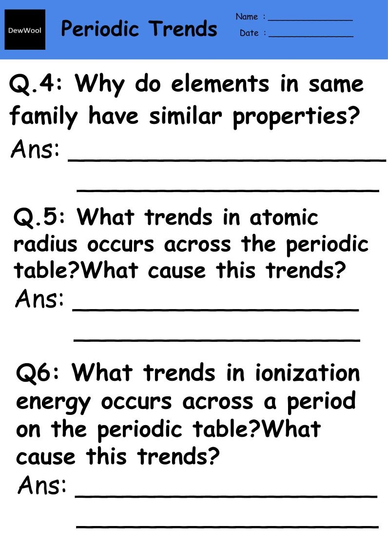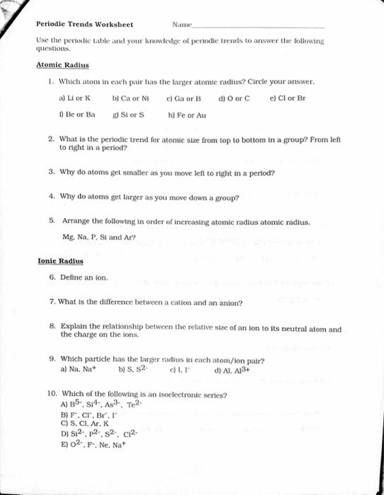 Periodic Trends Worksheet