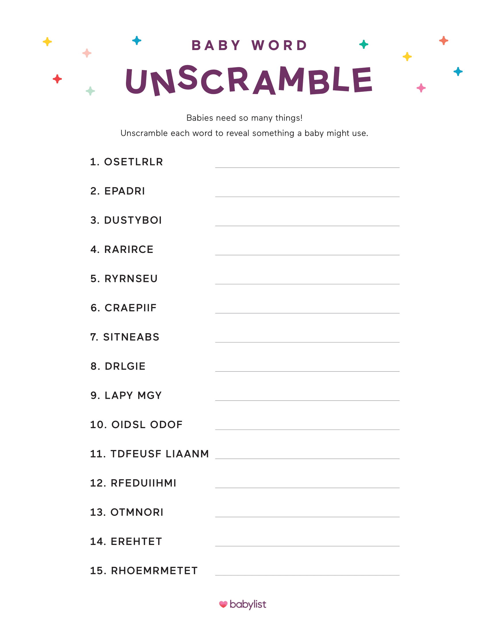 One of the best things about the printable baby shower unscramble game is that you can easily find free templates online. Simply print out the sheets and distribute them to your guests along with a pen or pencil. You can even personalize the game by adding the names of the parents-to-be, the due date, or other fun details.