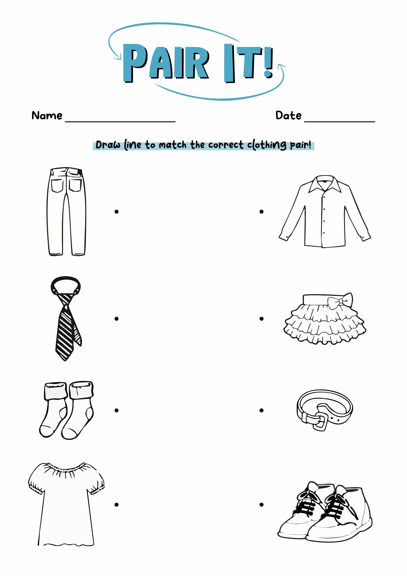 One fun printable activity for preschoolers is a clothing matching game. This game involves matching different pieces of clothing to their corresponding categories, such as shirts, pants, shoes, and hats. This activity can help preschoolers learn about the different types of clothing items and improve their visual discrimination skills.
