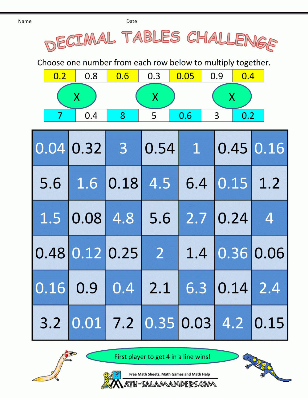 Another fun printable decimal game is Decimal Bingo. Players are given bingo cards with decimal numbers on them. The caller calls out decimal numbers, and players mark the corresponding numbers on their cards. The first player to get a row or column marked shouts “Bingo!” This game helps students practice recognizing and identifying decimal numbers.