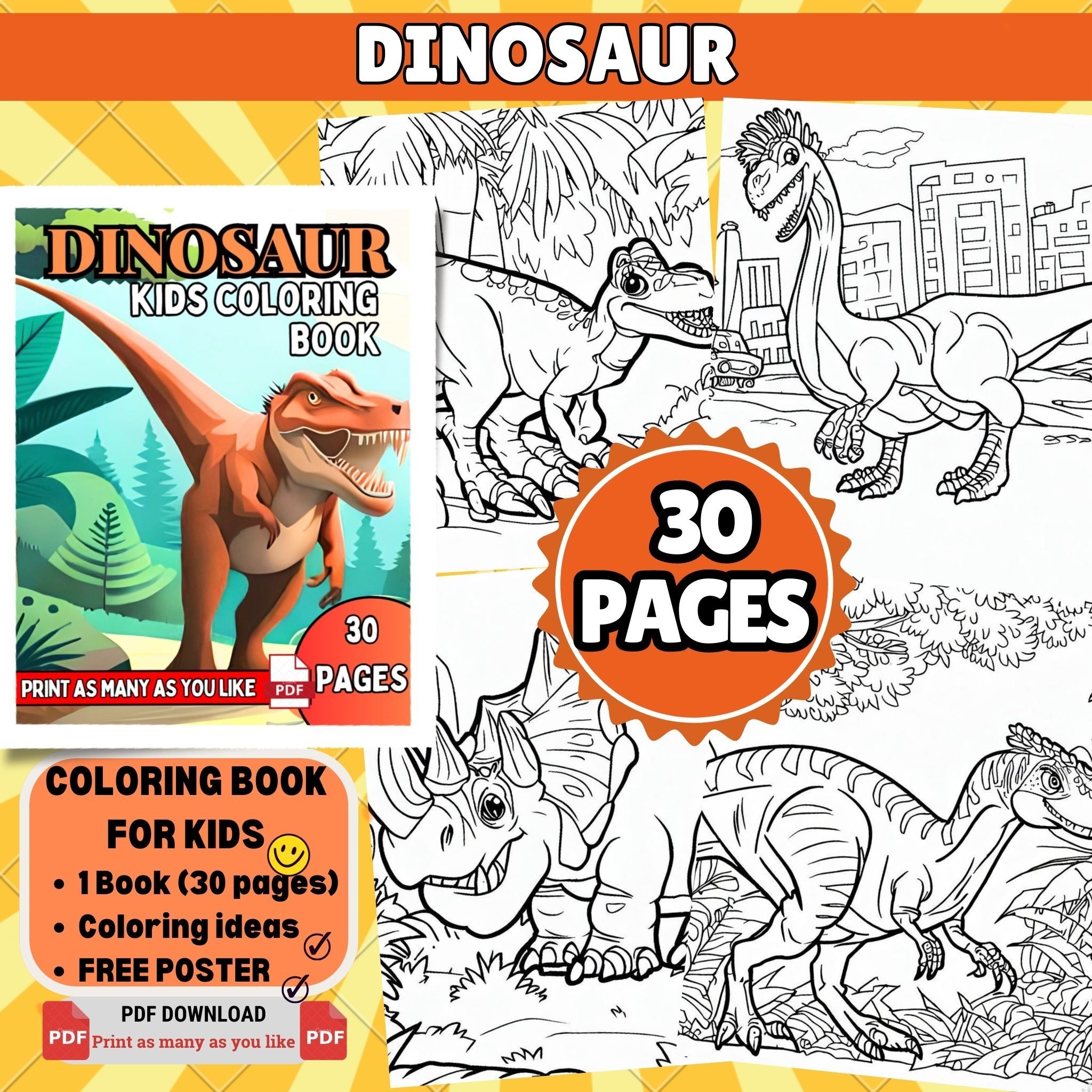 For a creative outlet, consider the Dinosaur Coloring Pages. These printable coloring sheets feature various dinosaur species and provide an opportunity for artistic expression. Children can use their imagination to bring these prehistoric creatures to life with vibrant colors.
