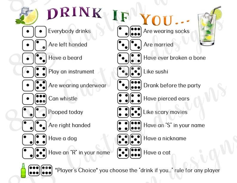 Whether you’re hosting a backyard barbecue, a game night, or just a casual hangout with friends, printable drinking games can add a new level of entertainment to the occasion. From card games to dice games to trivia games, there are a variety of options to choose from that can suit the interests and preferences of your group. These games are easy to set up and play, making them a hassle-free addition to any event.
