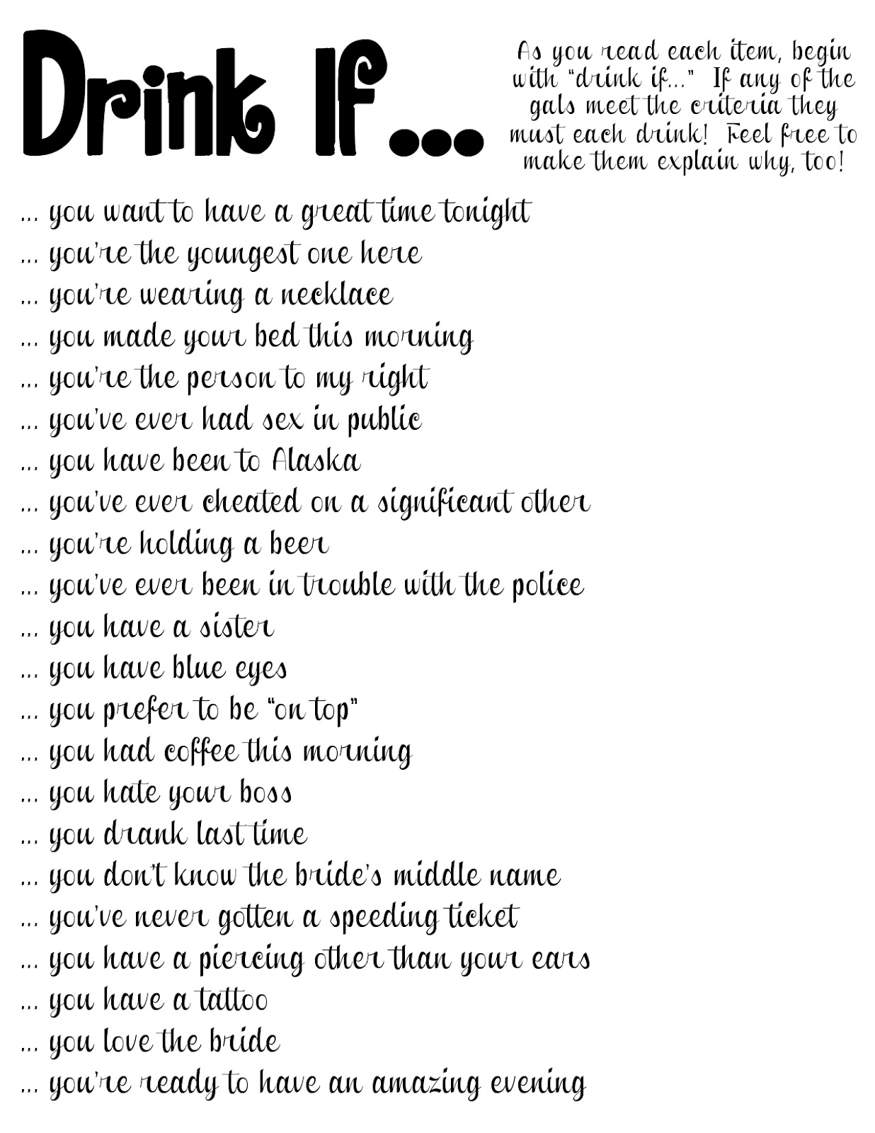 Overall, printable drinking games offer a convenient and entertaining way to spice up any social gathering. They are easy to set up, require minimal materials, and can provide hours of fun for you and your guests. So next time you’re planning a party, consider adding some printable drinking games to the mix for a memorable and enjoyable experience.
