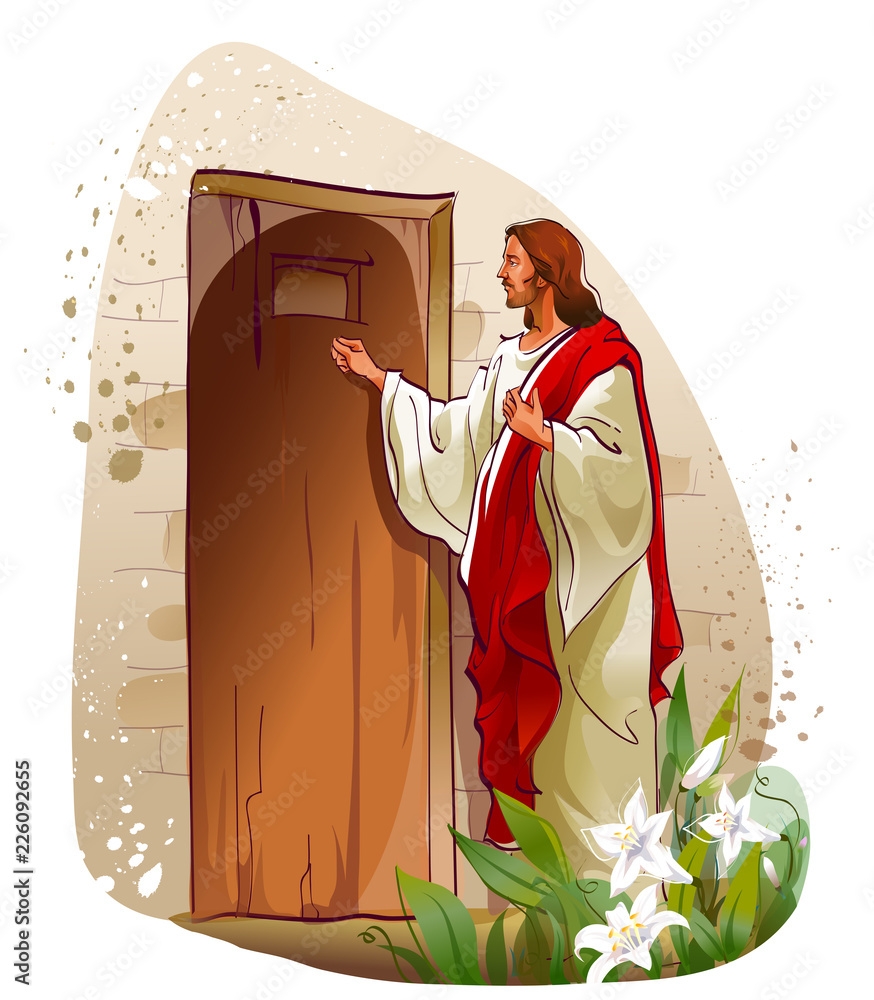 Jesus Christ Knocking On A Door Stock Vector Adobe Stock