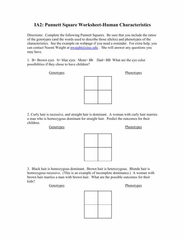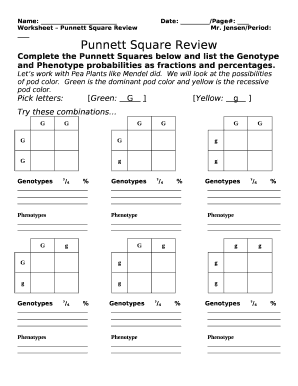 Punnett Square Worksheet