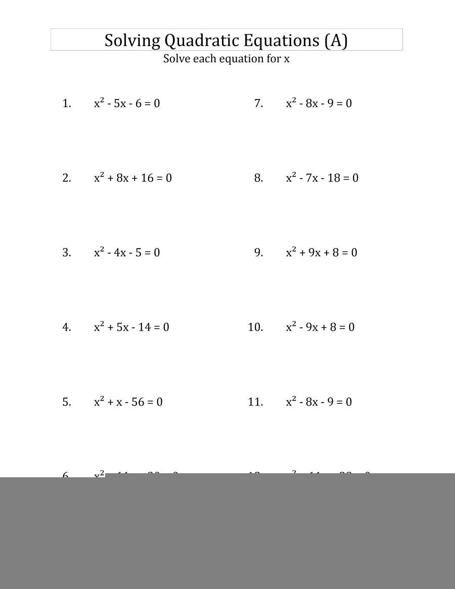 One common type of problem on a quadratic equations worksheet is solving quadratic equations by factoring. Students are given quadratic equations in standard form and are asked to factor them to find the solutions. Factoring is an important skill in algebra and is often used to simplify complex equations and expressions. By practicing factoring quadratic equations on a worksheet, students can sharpen their factoring skills and become more proficient in solving quadratic equations.