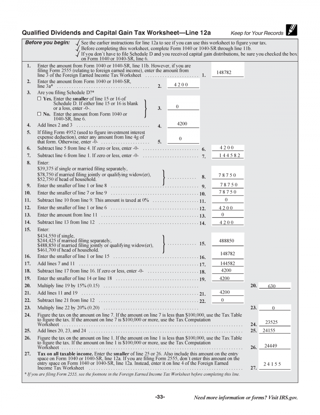 Qualified Dividends and Capital Gain Worksheet