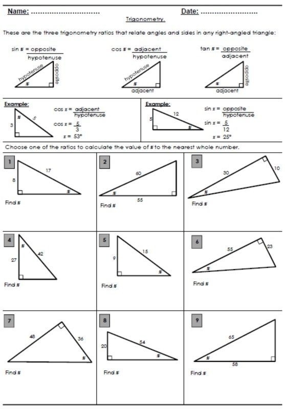 Trigonometric Ratios Worksheets With Answers Worksheets Master