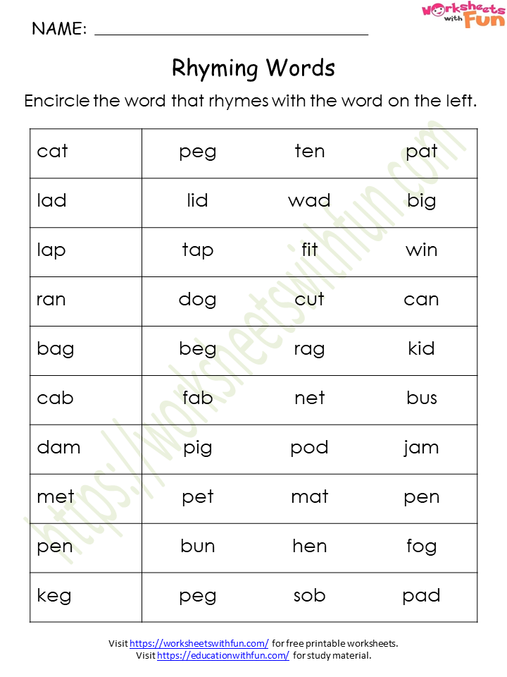 Rhyming worksheets are a fun and engaging way to help children learn about words that have similar sounds. These worksheets can be used in the classroom or at home to reinforce rhyming skills and improve literacy. Rhyming is an important skill for young children to develop as it helps them with phonemic awareness and reading fluency.