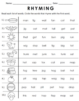 One of the most common types of rhyming worksheets is the matching exercise, where students are given a list of words and asked to match them with their rhyming pairs. This helps children practice identifying words that have similar sounds and reinforces their understanding of rhyming patterns.
