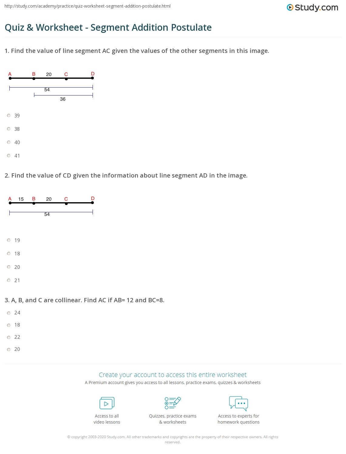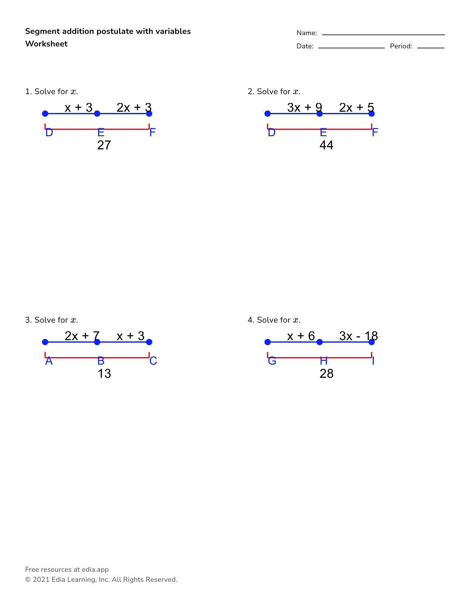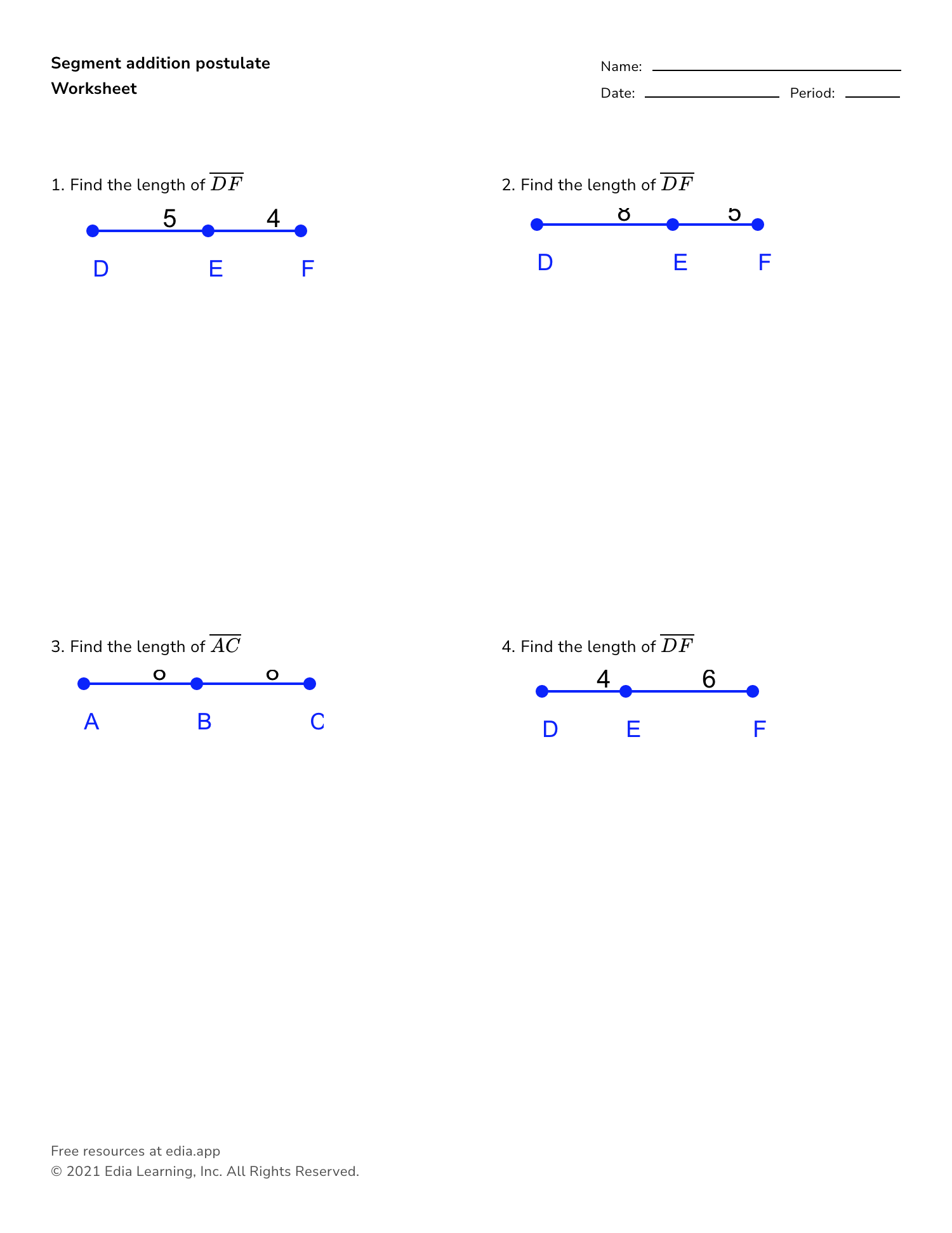 Segment Addition Postulate Worksheet