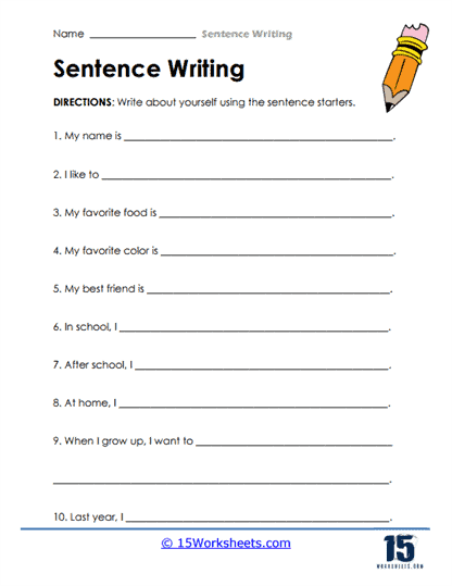 Sentence Writing Worksheets